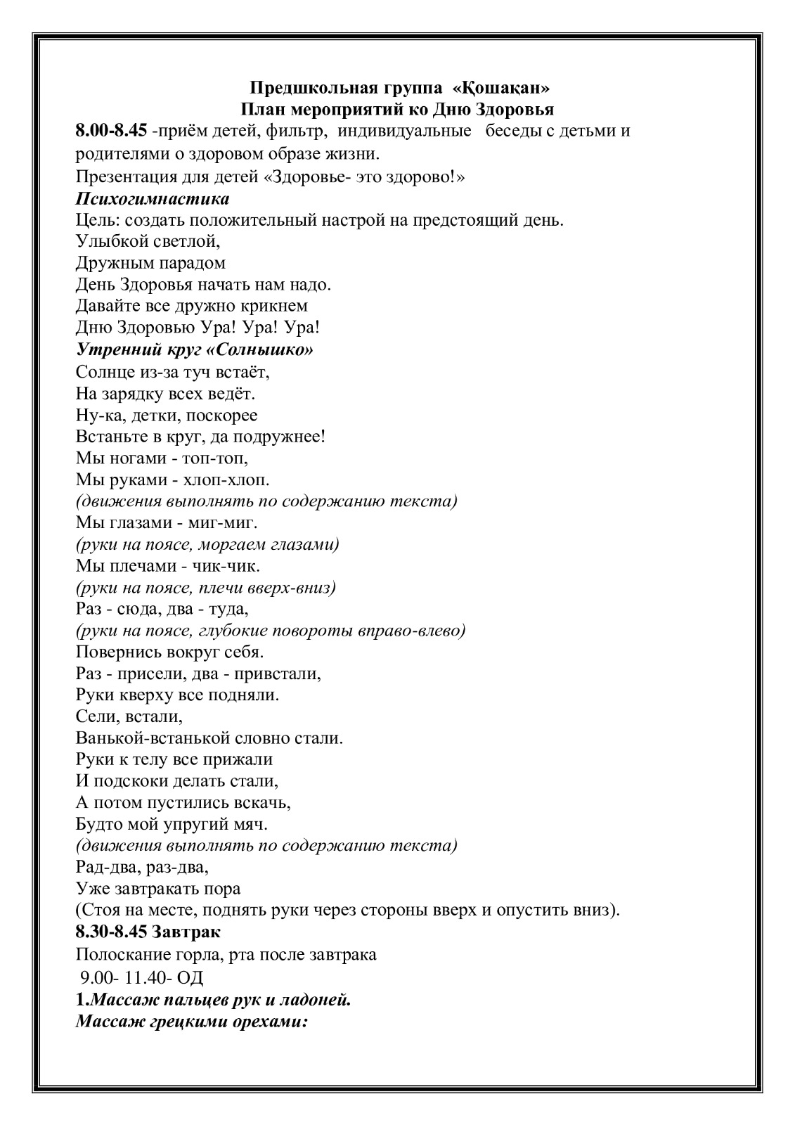 » » » "День здоровья", группа "Қошақан"