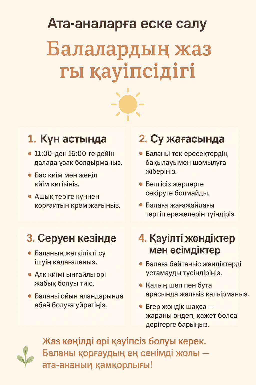 » » » Ата-аналарға жаднама "Балалардың жазғы қауіпсіздігі"