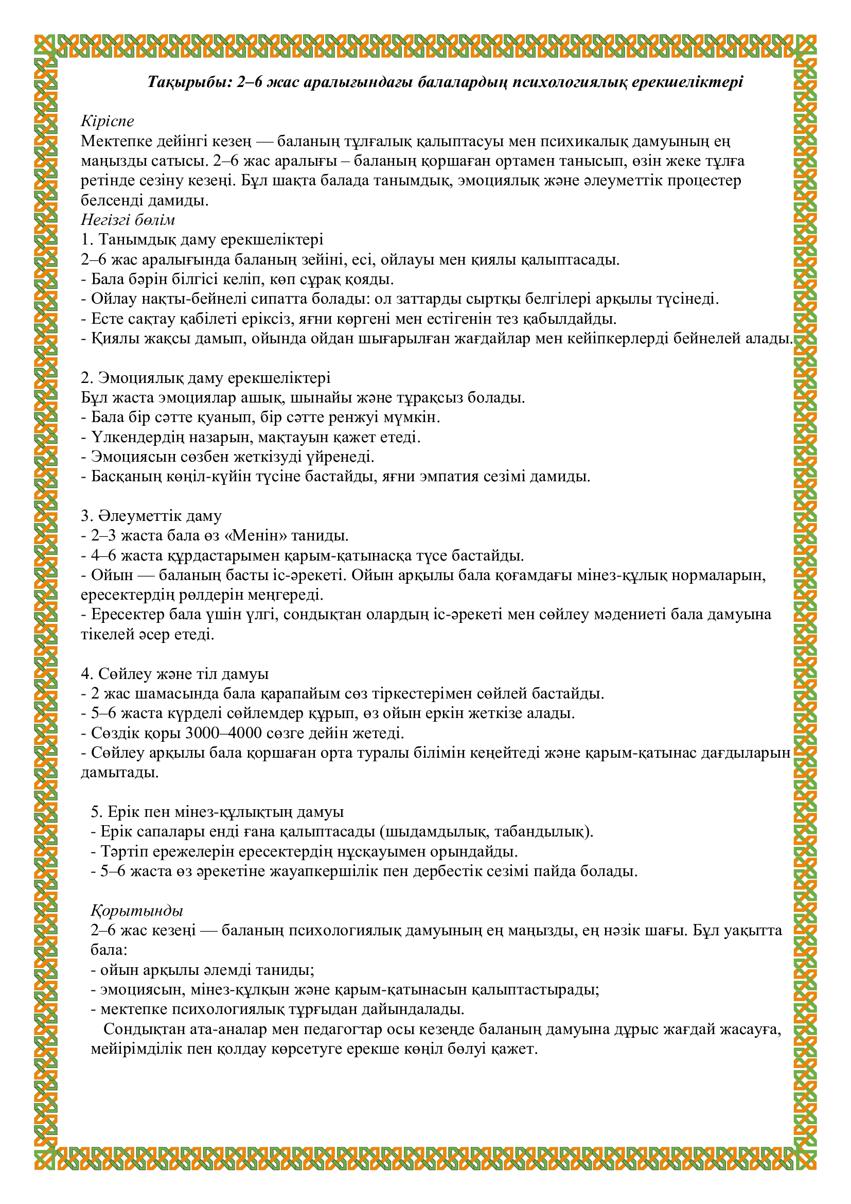 28 қазан 2025 0 1 2 3 4 5 Ата-аналарға арналған кеңес, жеке әңгімелер "2-6 жастағы балалардың психологиялық ерекшеліктері"