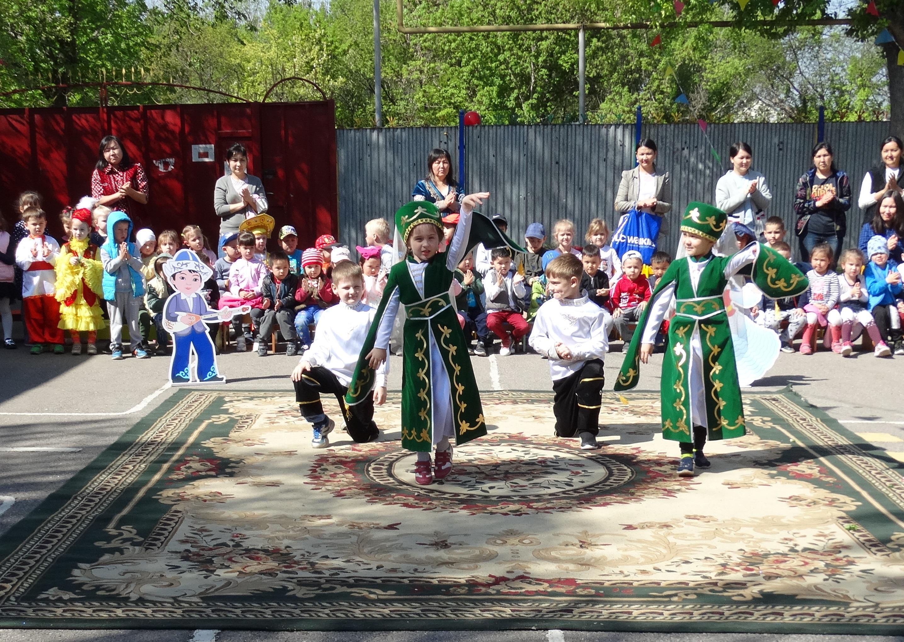 Вед: Казахстан - наш многонациональный дом, в котором в мире и согласии, дружно живут более 100 национальностей. Так пусть эта дружба длится века, на нашей земле царит мир и взаимопонимание. И пусть всегда в мире и согласии мы будем встречать наши праздники.