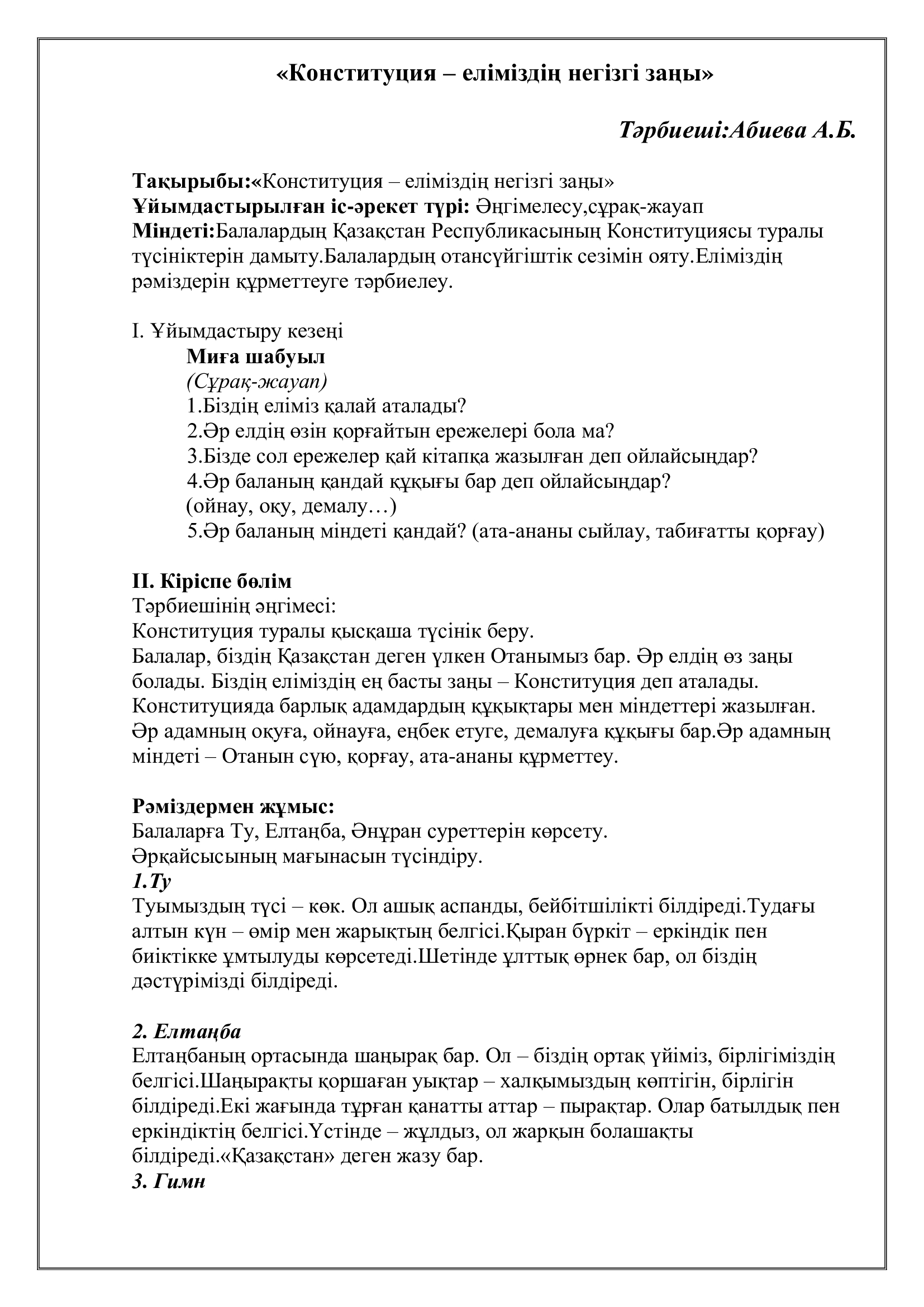 «Конституция – еліміздің негізгі заңы» » КГКП "Ясли сад №185"