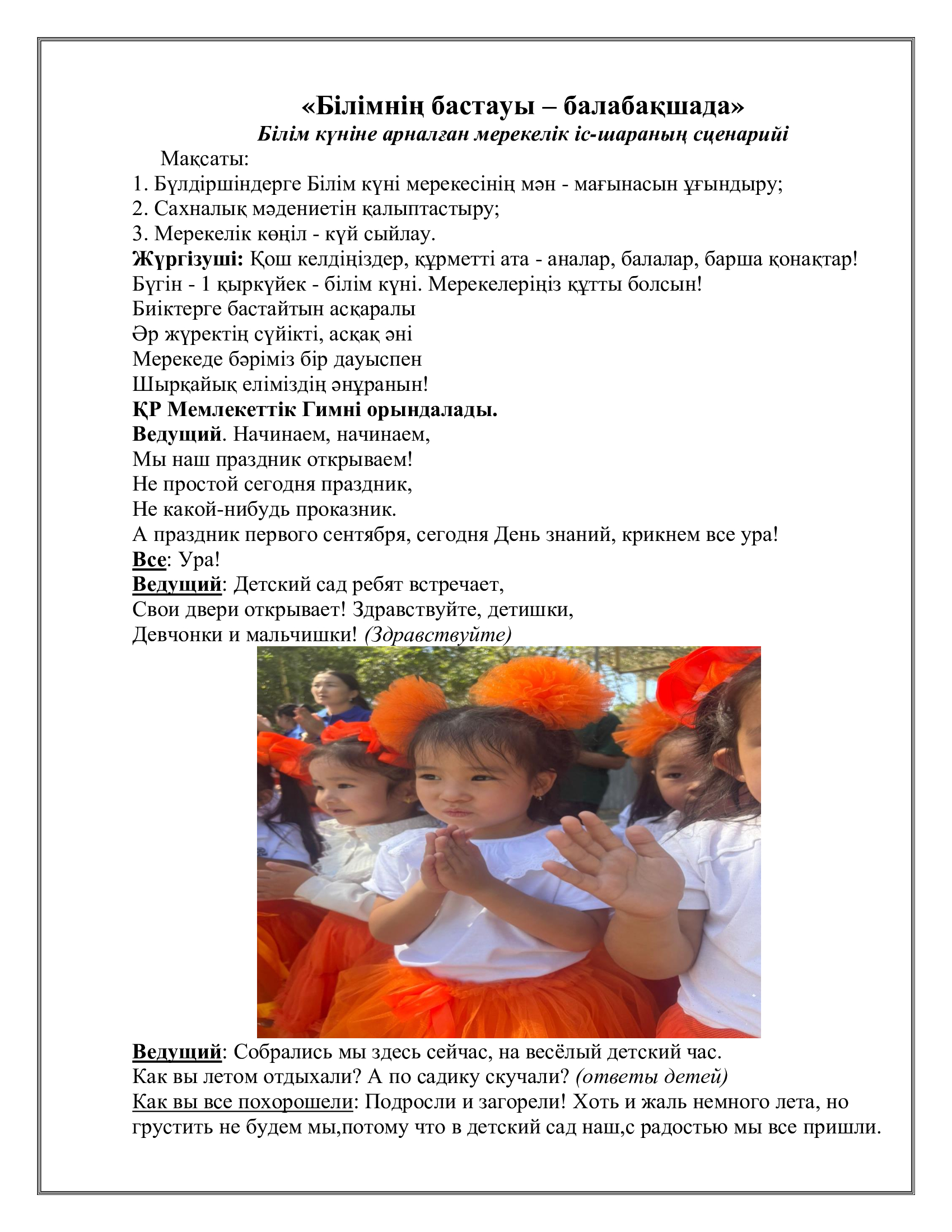 » » "Білімнің бастауы - балабақшада"